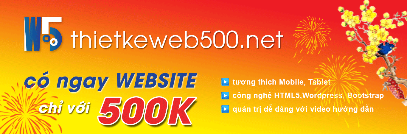 Thiết kế website 500k – gói thiết kế website tiết kiệm nhất cho bạn chỉ với 500.000 đ. Website tương thích di động – mobile, tablet với chức năng cơ bản thông dụng vẫn đảm bảo truyền tải thông điệp của bạn đến với khách hàng.
