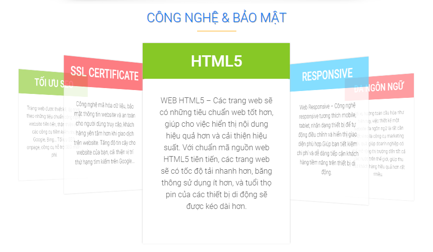 Sử dụng công nghệ mới thông dụng nhất hiện nay. Với đội ngũ thiết kế, lập trình năng động sáng tạo sẽ giúp hiện thực hóa website của bạn theo đúng sở thích, phong cách và tiêu chí riêng.