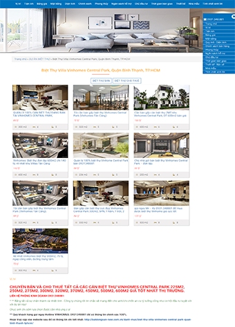 Mẫu thiết kế website bất động sản căn hộ Vinhome central