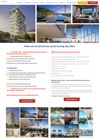 Thiết kế website bất động sản SERENITY SKY VILLAS