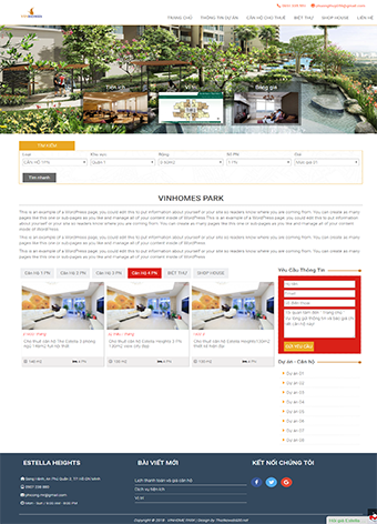 Mẫu thiết kế website bất động sản căn hộ VINHOME PARK